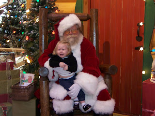 Brynn loves Santa in all other forms (stuffed, pictures, ornaments, etc.), he just really freaked her out in person. If you ask her what Santa says, she'll tell you "Ho, ho, ho"!!